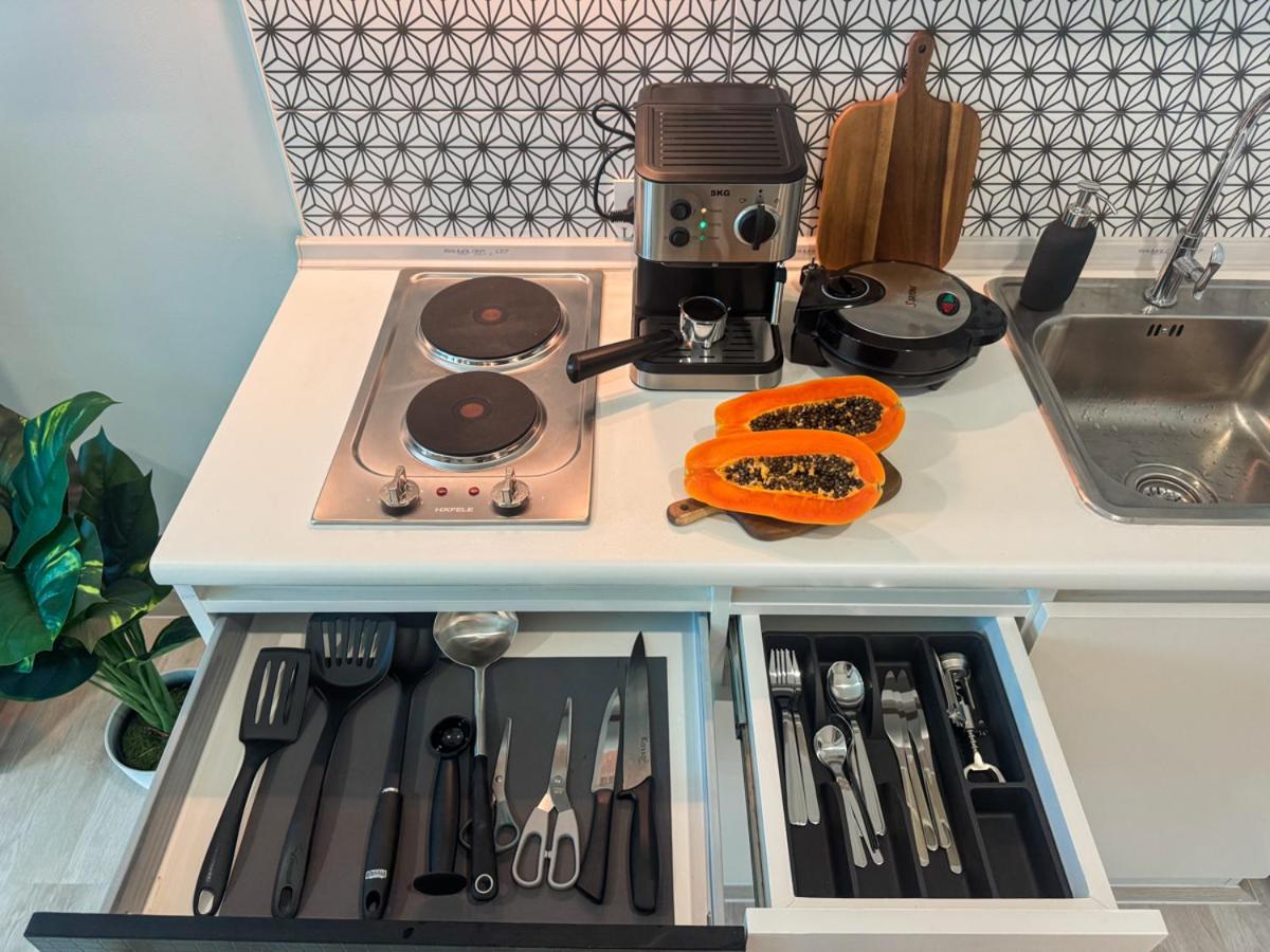 One-Bedroom Apartment. The air-conditioned apartment has 1 bedroom and 1 bathroom with a shower and a hairdryer. Guests can make meals in the kitchen that features a stovetop, a refrigerator, kitchenware and a microwave. Boasting a balcony with garden views, this apartment also features a washing machine and a flat-screen TV. The unit has 2 beds.