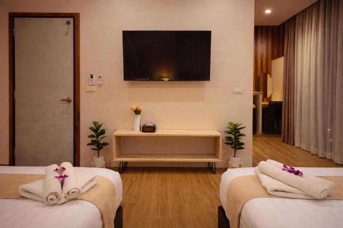 Deluxe Twin Room. The spacious twin room features air conditioning, a seating area, a balcony with garden views as well as a private bathroom boasting a shower. The unit has 2 beds.