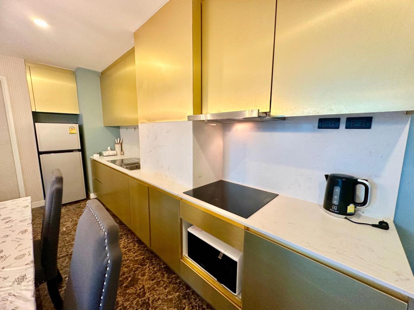 Suite with Pool View. The sauna is the standout feature of this suite. The air-conditioned suite has 1 bedroom and 1 bathroom with a shower and a hairdryer. Guests can make meals in the kitchen that features a stovetop, a refrigerator, kitchenware and a microwave. Boasting a balcony with pool views, this suite also features a tea and coffee maker and a flat-screen TV. The unit has 1 bed. ;