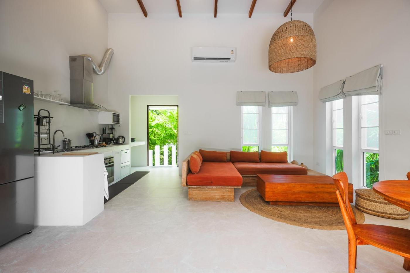 Three-Bedroom Villa. Guests will have a special experience as the villa provides a private pool. The air-conditioned villa features 3 bedrooms and 2 bathrooms with a shower and a bidet. In the well-equipped kitchen, guests will find a stovetop, a refrigerator, kitchenware and an oven. Among the room amenities are a seating area, a dining area, a wardrobe as well as a patio and garden views. The unit offers 4 beds.