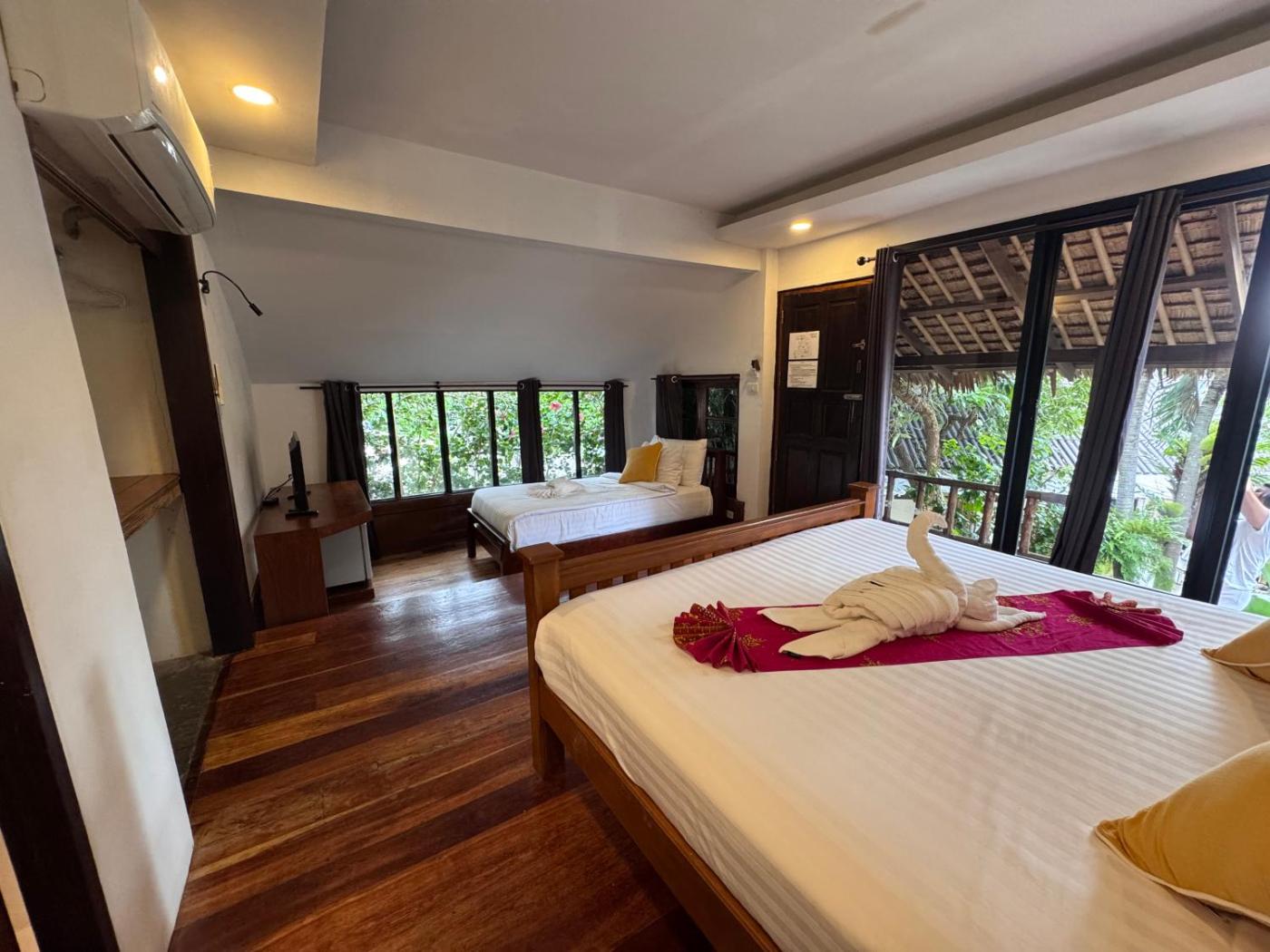 Triple Bamboo Pool View. This air-conditioned triple room is comprised of a TV with cable channels, a private bathroom as well as a balcony. The unit has 2 beds. ;